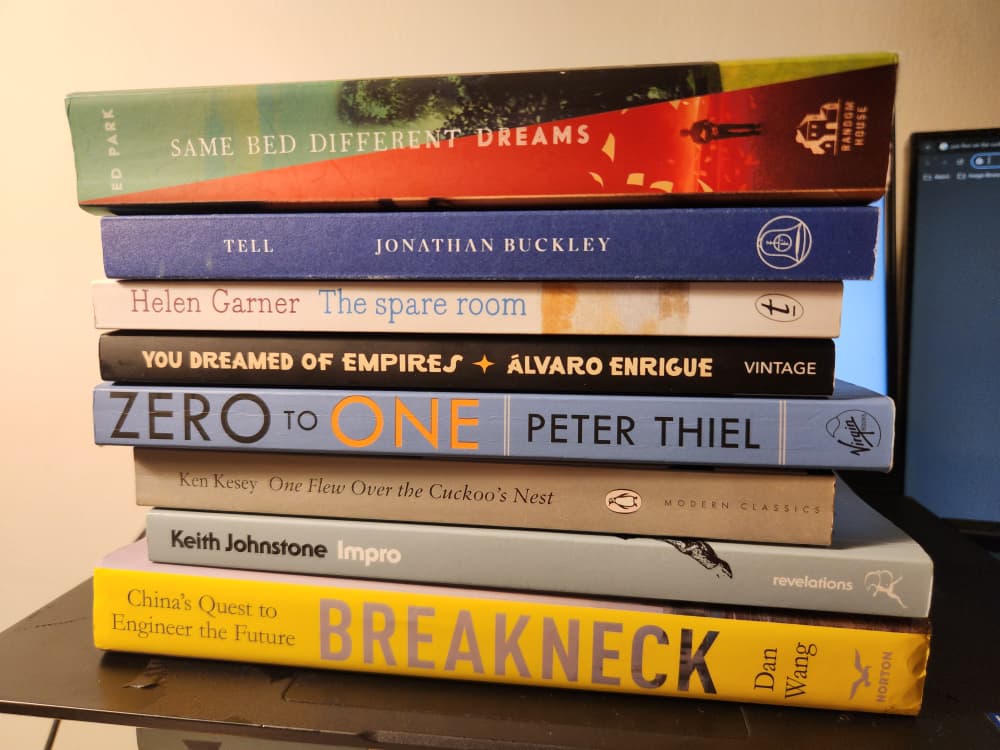 After years of Impro being on my radar, I finally finished it in 2025. Much of it is practical advice, though is it not somewhat sociopathic, or at the very least manipulative? Well, I reckon if books on body language and posturing are accepted and promoted at the workplace, then why not Impro? The chapter on Status was the most immediately relevant section – on how to play high/low status. The chapter on Narrative Skills gave me one of the most valuable pieces of writing advice which has slowly helped me come unstuck: “(1) interrupt a routine; (2) keep the action onstage—don’t get diverted on to an action that has happened elsewhere, or at some other time; (3) don’t cancel the story.”